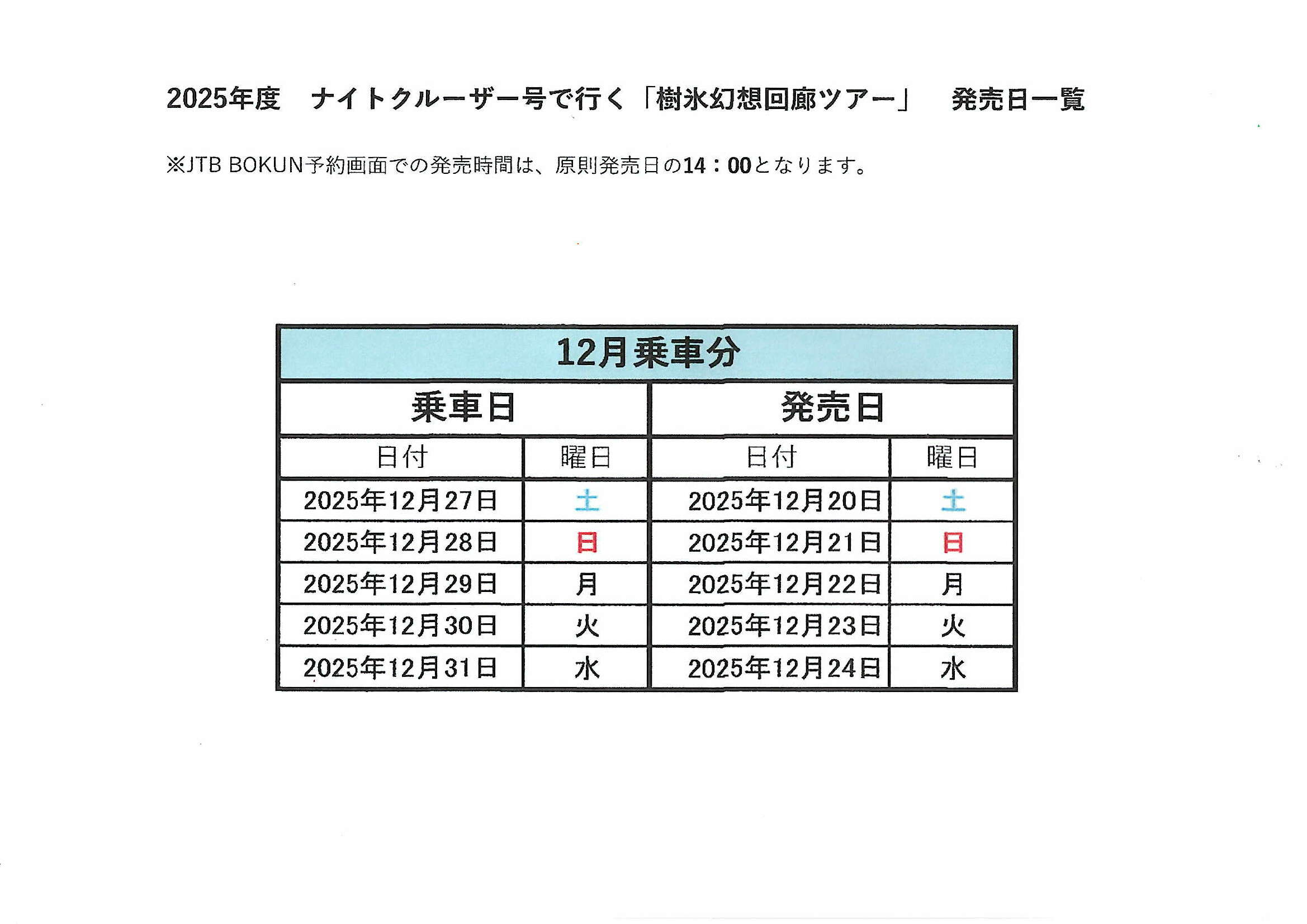 ※気象状況により、巡行場所の樹氷が崩壊し樹氷をご覧いただけなくなった場合