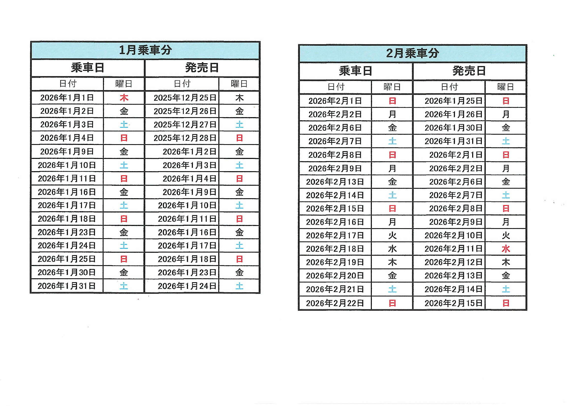 | 運行時間 | 17:00〜20:00(最終19:00まで)1日4便運行 17時 18時 19時 20時 便 |