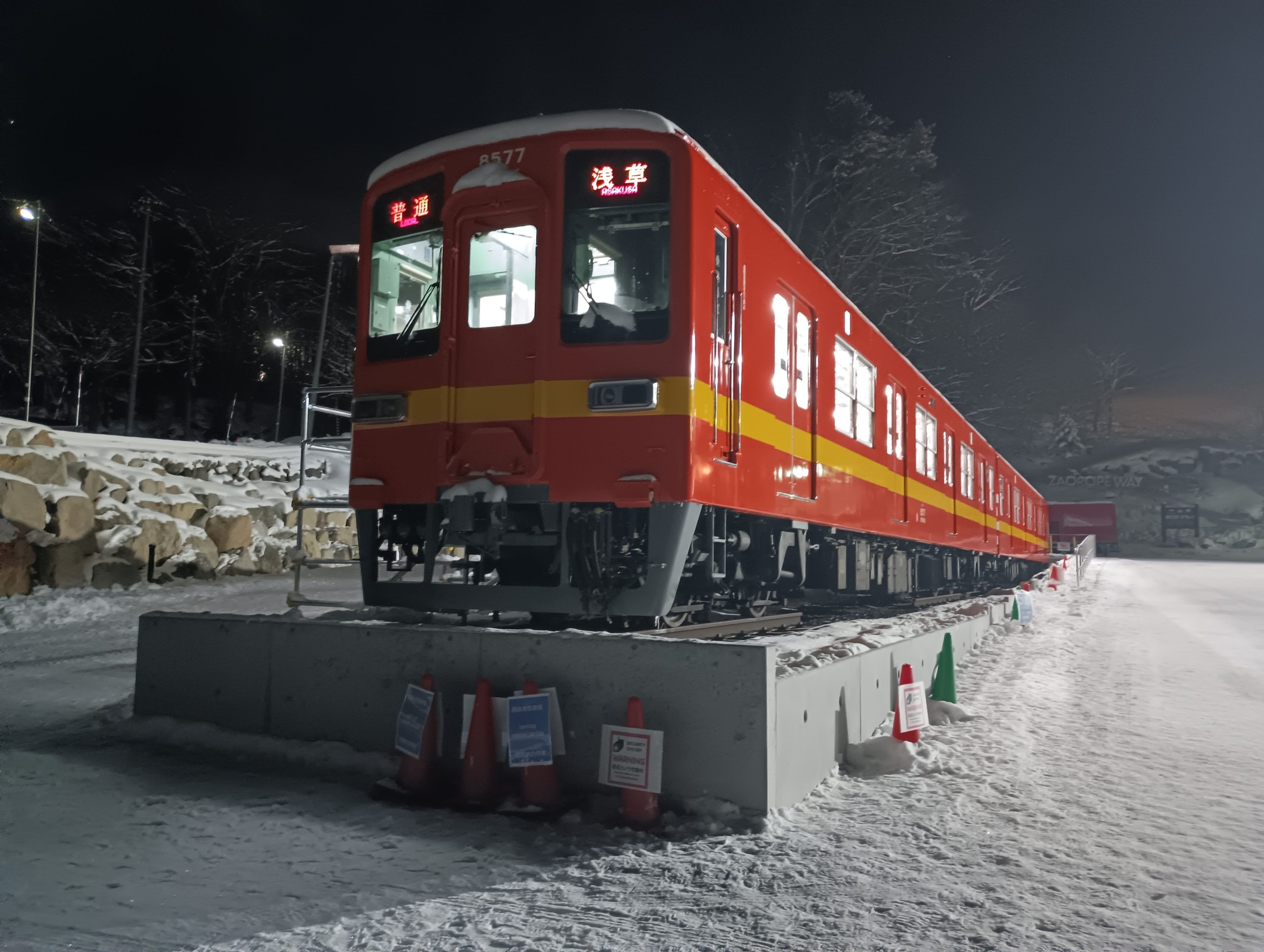 ライトアップ開催時 東武鉄道8577F の室内照明を点灯いたします。